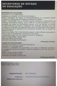 Pará: Educação do estado contrata empresa por Dispensa de licitação no valor de 73,9 milhões para cestas de alimentação escolar, no período da suspensão das aulas por conta do coronavírus. Tudo certo se o capital da empresa não fosse de apenas 79 mil reais. Para dispensa de licitação (art.24, IV, Lei 8..666/93) empresa tem q ter no mínimo o capital de 10% do valor do contrato, ou seja, 7,9 milhões. Blog de olho em todos Estados, inclusive Sergipe as Prefeituras.