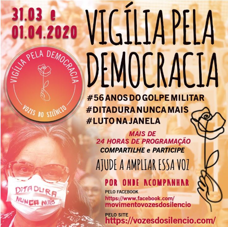 www.twitter.com/Iran_Barbosa O golpe militar que submeteu o Brasil a um regime de terror por mais de duas décadas mostrou-nos que ditaduras sempre significam opressão, tortura e desprezo à vida. Regimes antidemocráticos e líderes autoritários massacram o povo, desprezam a solidariedade e os valores humanos. Neste momento em que o obscurantismo, mais uma vez, ameaça a nossa vida é ainda mais importante dizer: Para que não se esqueça, para que nunca mais aconteça!