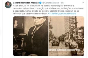 presidente eleito democraticamente não deveria saudar uma ditadura que matou, espancou e destruiu famílias brasileiras. Aliás, alguns desses covardes das Forças Armadas rosnam contra a democracia e a população do Brasil, mas falam “’delicadamente” com os ianques, para entregar a soberania do País e suas riquezas. Como exemplo, o blog cita o vergonhoso “acordo”’ para “alugar “ aos EUA a Base Militar de Alcântara (MA) Cujo ato se constitui crime de lesa-pátria, pois os inquilinos jamais tirarão as patas de lá. Para toda essa gente estúpida, Deus trouxe o Covid-19, como recompensa! Em tempo, depois do 31 de março: ditadura Nunca Mais! E os saudosos daqueles tempos devem sonhar com o Pau de Arara, eles adoram…