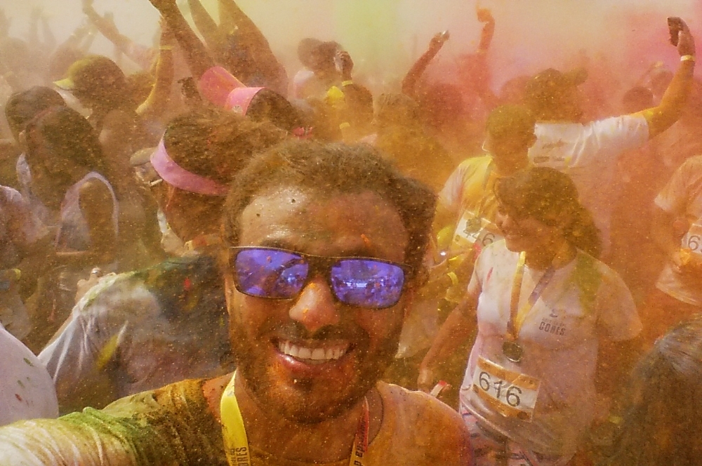 Não houve quem salvasse a sua camisa branca, cor estrategicamente selecionada pela organização da corrida. Foram montados dois corredores de “pó mágico” e todos, mesmo aqueles que tentaram fugir, foram pegos pela poeira pigmentada que teimava em se materializar em arco-íris. Sem o dândi que nos cerca diariamente, água, suor e tinta aquarelaram os corpos, tingiram cabelos e com vivacidade fez da rua uma orquestra de tons.