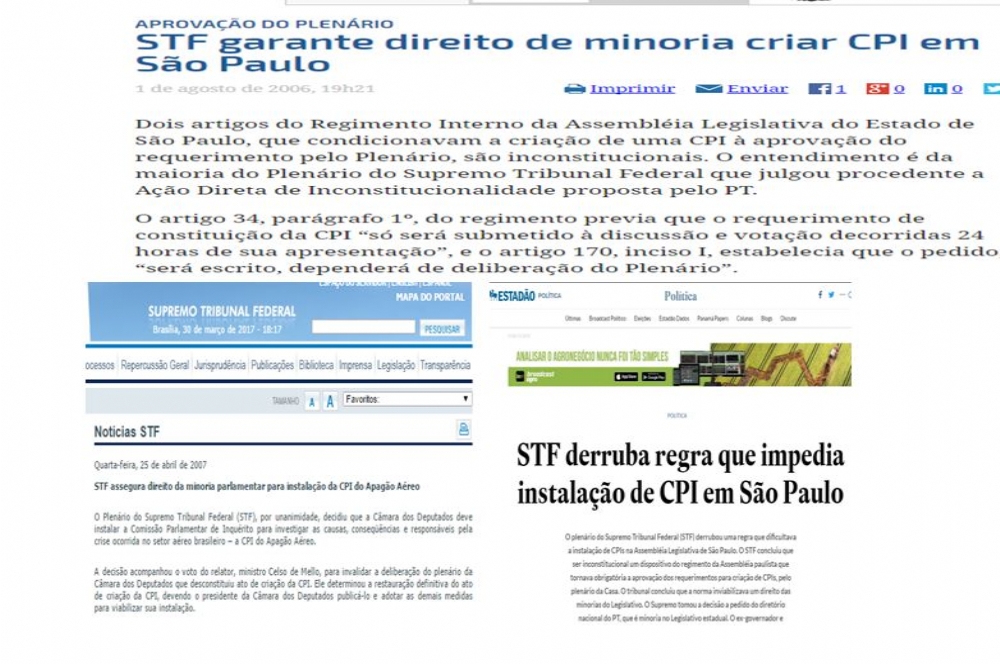 STF tem garantido o direito da minoria – O Supremo Tribunal Federal (STF), nos últimos anos, por algumas vezes já garantiu o direito da minoria para abertura de uma CPI. Inclusive no caso da CPI da Petrobrás, que a Mesa Diretora não queria instalar e o Supremo garantiu o direito. Na próxima semana a oposição deve ingressar com o mandado de segurança no TJSE. o requerimento da CPI tem nove assinaturas, mas que um terço exigido. E o Regimento da Câmara impede retirada de assinaturas após protocolada a propositura.