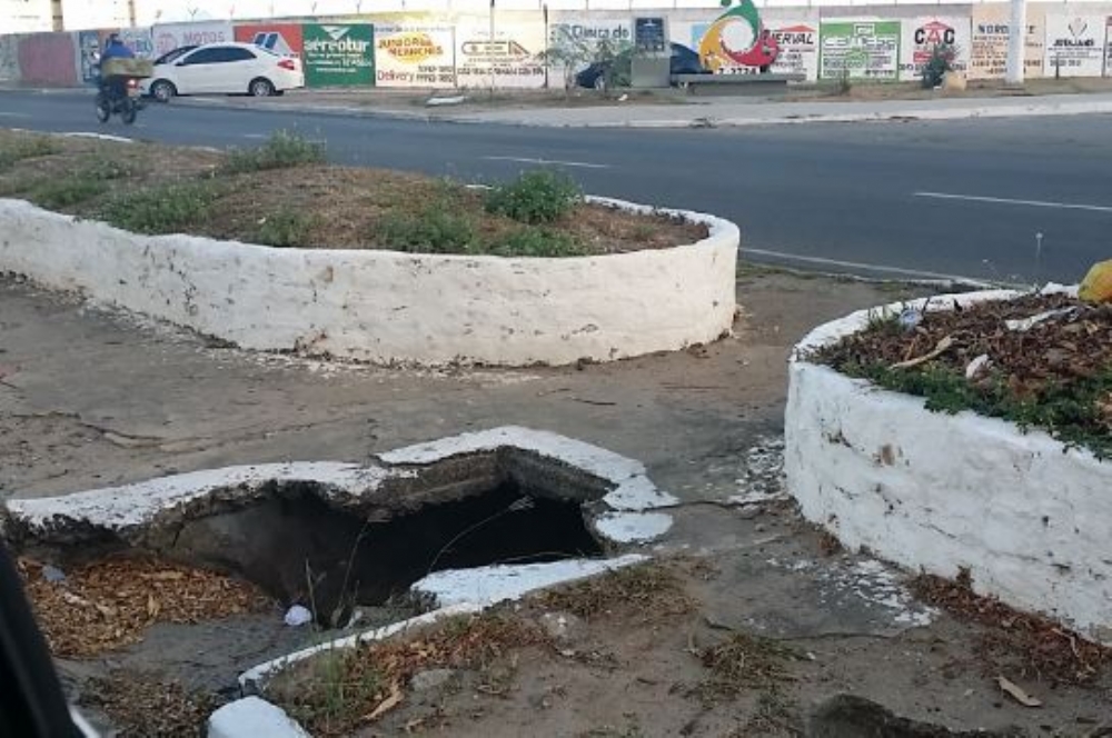 Buraco em canteiro na Avenida já provocou diversos acidentes