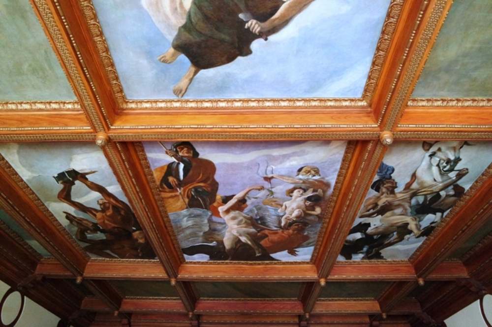 A antiga Sala de Atos, onde os vereadores se reuniam e aprovavam leis municipais, tem o teto totalmente coberto por pinturas. No alto das paredes, ramos de erva mate esculpidos permeiam quase todo o espaço. Na porta, um pinheiro esculpido em madeira transforma-se em um detalhe à parte. Também nesse andar há uma réplica da sala do prefeito Cândido de Abreu.