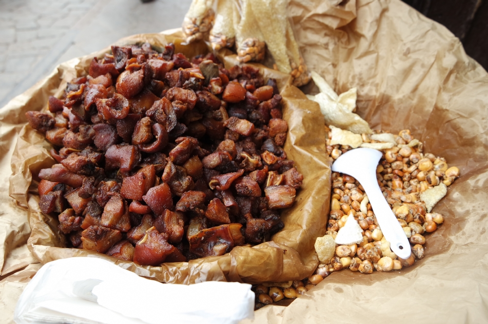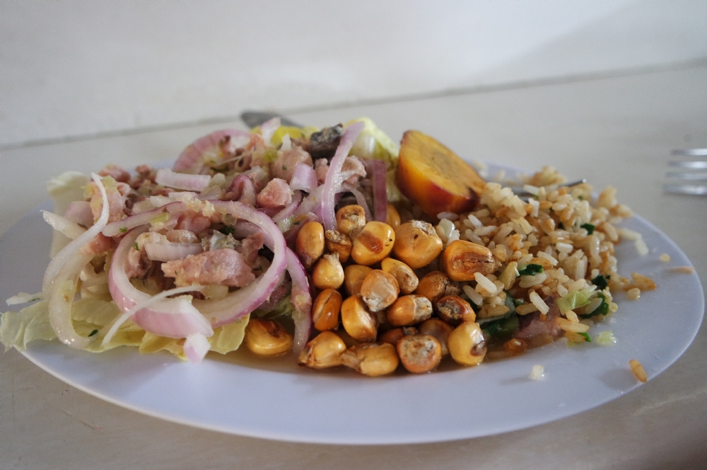 Degustar da Chicha Morada, um suco de milho escuro adocicado faz parte das iguarias locais, além de embalagens vendidas de um torresmo de porco misturado a um grão de milho assado na brasa, como se fosse um amendoim.