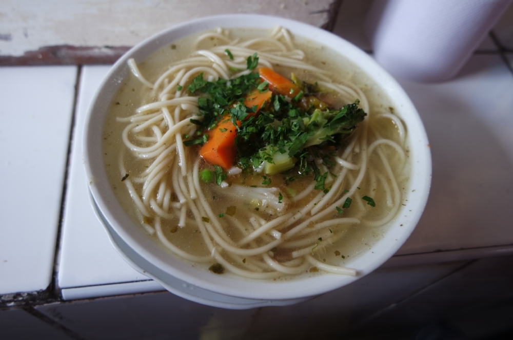 No mercado São Pedro o visitante terá o contato com as comidas diárias do cusquenhos, a exemplo de pescados (truta), mariscos e tipos de ceviches, preparados sem nenhuma cerimônia e servido ali mesmo. Há também uma sopa bem apreciada por moradores, com um pedaço de frango debulhado aos olhos do turista. O caldo de sabor apurado leva ervas e especiarias, a exemplo de alguns tipos de pimentas, como a ají, e ganha partes do frango.