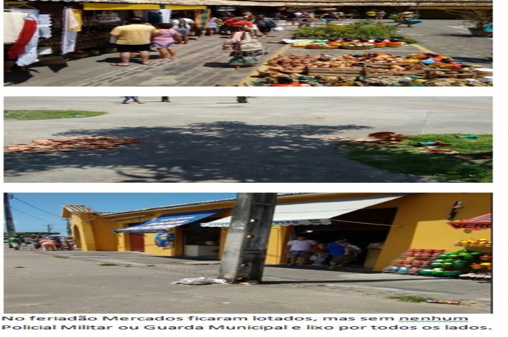 As fotos ao lado foram enviadas por um aracajuano, frequentador dos mercados Albano Franco, Thales Ferraz e Antônio Franco. No feriadão os mercados estavam cheios de turistas, mas apenas dois policiais militares foram vistos no mercado Albano Franco. Nenhum PM no Thales Ferraz, nenhum no Antônio Franco (artesanato). Também nenhum guarda municipal. Foi constatada também a falta de recipientes para que os lixos fossem depositados. Ou seja, o turista acaba jogando o lixo no chão por falta de opção.Os poucos lixeiros, estavam no mercado Albano Franco. Realmente, uma situação de abandono e aspecto de desprezo do poder público.