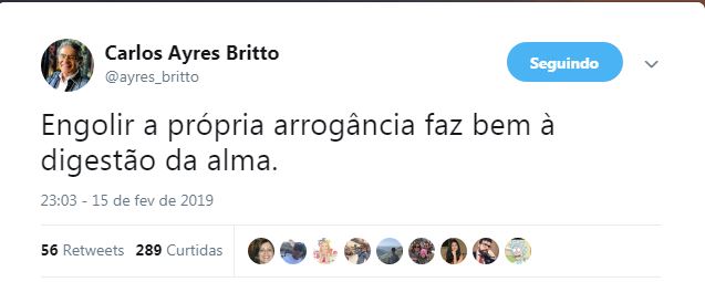 “Engolir a própria arrogância faz bem à digestão da alma.” Carlos Ayres de Britto.