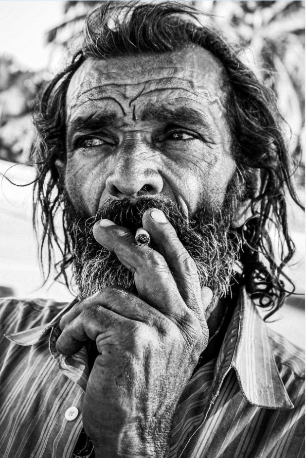 O catador de material reciclável dá uma tragada no cigarro e pondera antes de responder a uma pergunta do fotógrafo (Barra dos Coqueiros-SE, verão de 2020) …