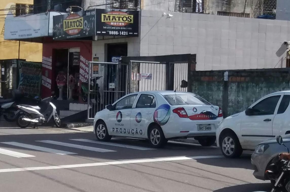 | Carro da TV Atalaia estacionado na faixa de pedestre. |