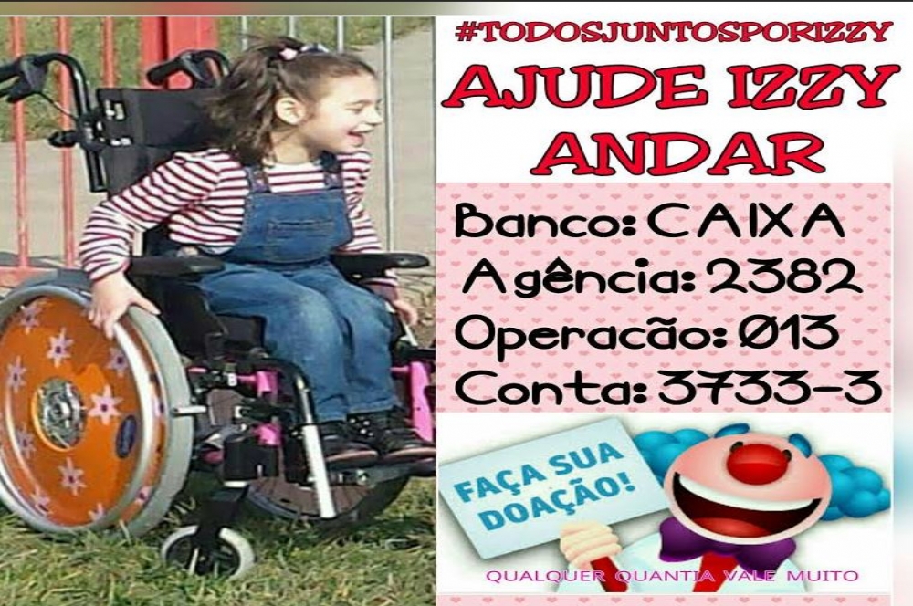 Vamos ajudar IZZY sair da cadeira de rodas? Festa dançante beneficente