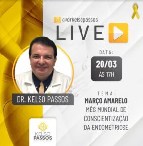 Live Março Amarelo: mês mundial da Conscientização da Endometriose. Neste sábado, 20, às 17h Março é o mês de conscientização da Endometriose e para tirar as dúvidas das centenas de mulheres que são acometidas pela doença. O médico ginecologista Kelso Passo, que é especialista em Endometriose e Ginecologia Minimamente Invasiva pelo Hospital Sírio Libanês, irá fazer uma live sobre o assunto neste sábado, dia 20 de março, às 17h, em seu Instagram: