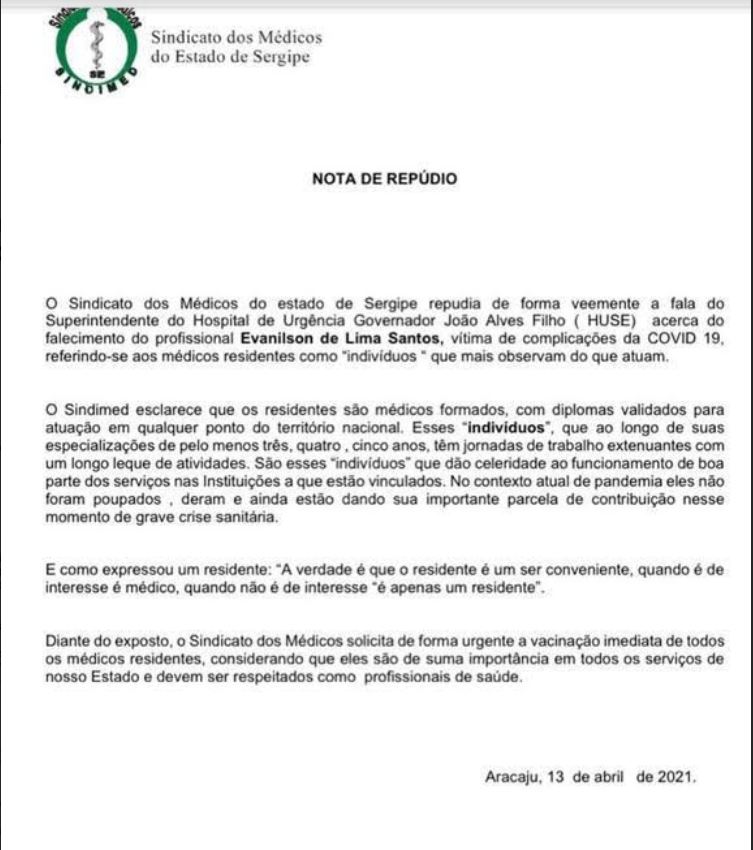 Solidariedade Gilmar explicou que a Polícia Militar foi usada pelo Governo para interromper um evento remoto que seguia todo o protocolo para evitar a disseminação do coronavírus e que servia de instrumento de solidariedade e de caridade para com o grupo de músicos sergipanos que padece com as medidas do Governo e chega até a passar fome. O evento estava sendo realizado na tarde do último domingo (11) em Itabaiana.