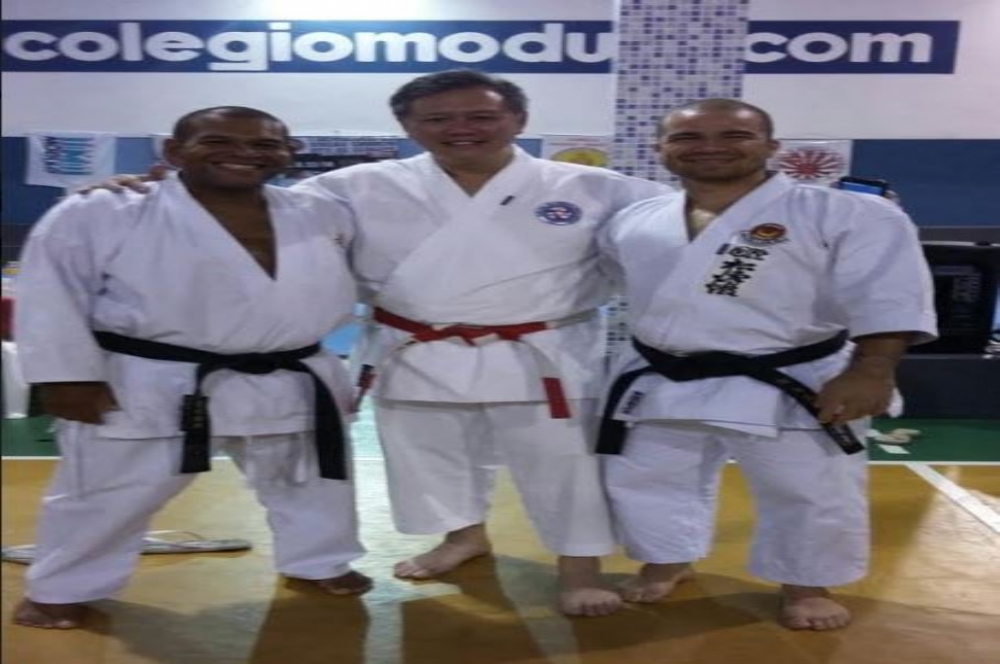 participação ativa dos karatecas de Sergipe. o evento contou com a presença dos kyoshi Mitsuhide Shinzato e Rogério Wong que ministram aulas de conhecimentos teóricos e práticos. Na foto o karareca Yoacan Jócelis com os mestres.