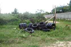 Alguém espalhou criminosamente vários pneus no Robalo, próximo ao antigo clube da Telergipe e na rua que fica nos fundos desse clube que não funciona mais. Os pneus estão espalhados em vários locais. Pelas fotos recebidas dá para perceber que alguns pneus estão amarrados com arames. Será alguma experiência exótica ou alguém deliberadamente quer cultivar o mosquito transmissor da dengue? Segundo o morador que enviou o e-mail esses pneus foram colocados há uns três dias. Fica o alerta para a Secretaria Municipal de Saúde tomar as providencias urgentes.