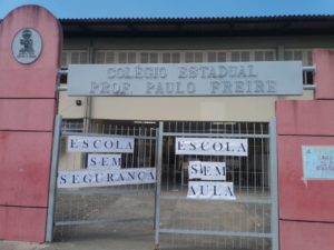 Sem segurança, alunos protestaram ontem E os alunos do Colégio Estadual Professor Paulo Freire, localizado no Bairro Industrial em Aracaju fizeram um protesto ontem, 25, por conta da falta de segurança. As aulas foram suspensas. Os alunos estão cansados de pedir segurança e nada é feito.