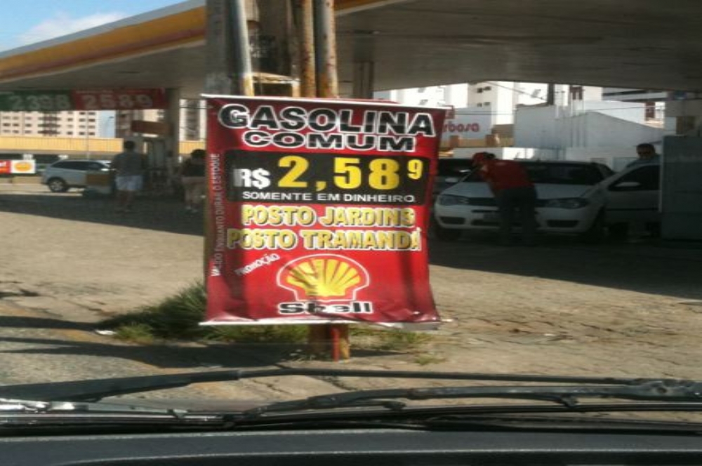 De um leitor indignado: Posto da Av. Francisco Porto praticando preço diferenciado para quem compra em Dinheiro ou