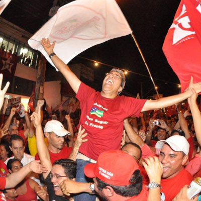 Déda comemorando a vitória nos braços do povo. (César de Oliveira)