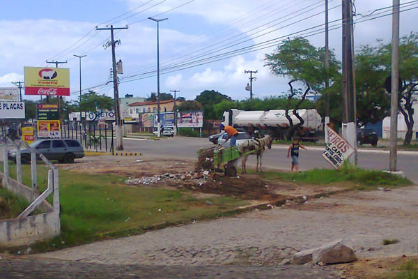 deparo com um carroçeiro guiando a sua carroça na contra-mão.Veja só a atitude deste carroçeiro que em plena luz do dia, não importando-se com quem passa e se será punido com uma multa, não mede esforços para emporcalhar a nossa bela cidade.Todos nós sabemos que a Prefeitura Municipal de Aracaju faz um esforço enorme para manter a cidade limpa, eu como cidadão tenho uma opinião formada a sete respeito.Se todos nós que temos veículos quando cometemos alguma imprudência o transito, somos punidos com multas. A PMA deveria fazer um esforço maior e colocar mais equipes de fiscalização para que este tipo de coisa não volte a se repetir.Não é porque que este cidadão só possui uma carroça que temos que passar a mão na cabeça e chamá-lo de coitadinho, este tipo de atitude tem que ser punida para que isso não volte a se repetir”.