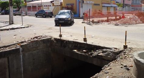 Do leitor Délio H. Cavalcante: “Sou morador do bairro Ponto Novo, Aracaju, e me espanta a situação ilustrada nas imagens anexas. Trata-se do cruzamento das Ruas Dr. Francisco Moreira e Abigail Ferreira A. Ramos, no limite entre os bairros Ponto Novo e Luzia. No local está em execução uma obra da DESO, junto ao canal da Rua Francisco Moreira e justamente no cruzamento com a Rua Abigail Ferreira A. Ramos. A obra exige que o cruzamento seja realizado em meia pista, e nesse ponto crítico a mureta que protege os condutores e pedestres de um acidente no canal foi derrubada a