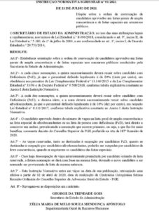 SE: Convocação em concursos No Diário Oficial da última sexta-feira, 30, a Secretaria de Estado da Administração publicou uma instrução normativa sobre a ordem de convocação em concursos públicos do governo estadual. Ou seja, é um critério de convocação para quem concorre nas vagas ferais, nas reservadas às pessoas com deficiência e nas destinadas aos afros.