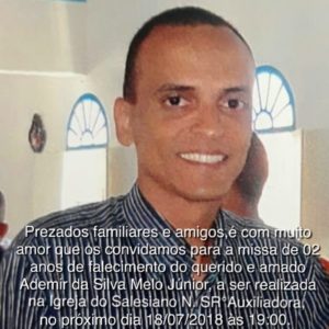 do delegado Ademir da Silva Melo Júnior, convidam para a Missa de dois anos de falecimento dele que será realizada hoje, 18, na Igreja do Salesiano, Nossa Senhora Auxiliadora, em Aracaju às 19h. O assassino foi preso, mas até hoje ainda se investiga, através do MPE, a motivação do crime, já que os familiares de Ademir questionam que a motivação seja de latrocínio. O vídeo de uma câmera localizada no prédio vizinho até hoje não foi divulgado para a imprensa.