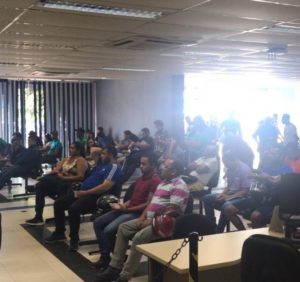 padrinho forte? De um servidor do órgão: “A foto foi tirada ontem, 18, às 13h. Mostra o setor de atendimento do Detran/SE cheio de gentes, umas próximas das outras e nenhuma medida da direção do Detran para conter o fluxo e, por exemplo, deixar entrar no recinto uma quantidade mínima de pessoas por vez. Parece que a direção do Detran/SE não leu o decreto governamental. E um servidor de carreira do Detran, preocupado com o problema, disse que lá a direção não está preocupada. E ainda bradam pelos corredores que o governador é quem precisa do padrinho forte do indicado. “ Observação do blog: a tarde saiu o comunicado de suspensão dos serviços presenciais.