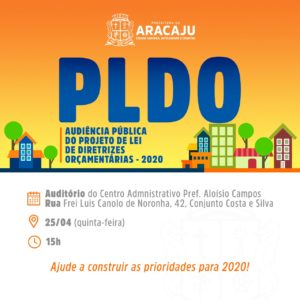 A Prefeitura de Aracaju, por meio da Secretaria Municipal do Planejamento, Orçamento e Gestão (Seplog), convida os cidadãos e as entidades representativas da capital para a Audiência Pública que acontece nesta quinta-feira, 25, no auditório do Centro Administrativo Prefeito Aloísio Campos, sede da administração municipal, a partir das 15h.