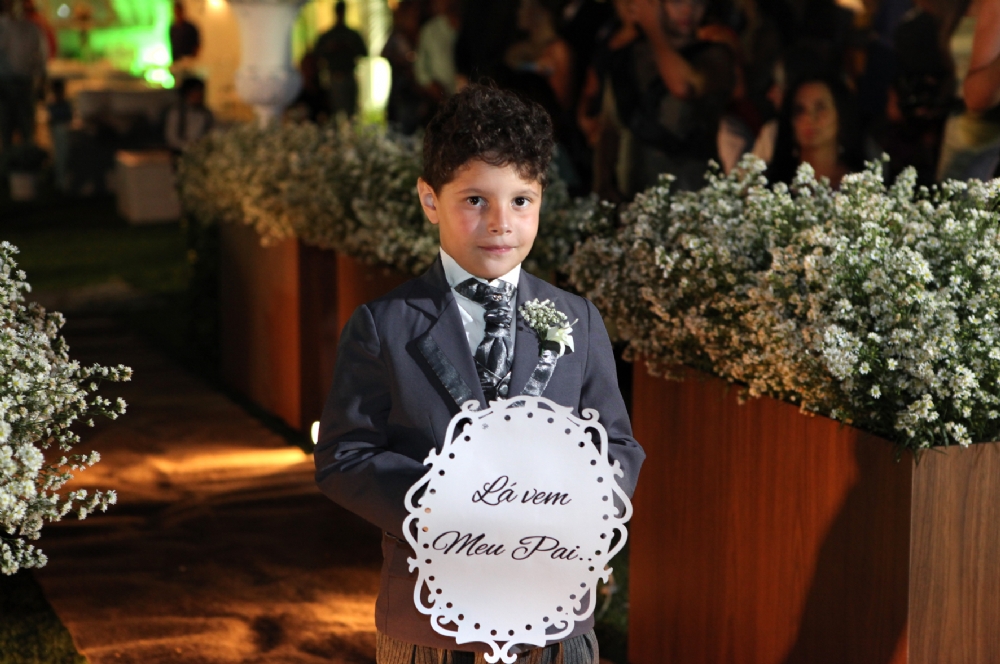 Muitos noivos usam plaquinhas com dizeres divertidos, confeccionados em diversos tipos de materiais, como papel, madeira, tecido, que fazem sucesso nas mãos de pajens e daminhas, antes dos noivos entrarem na cerimônia.