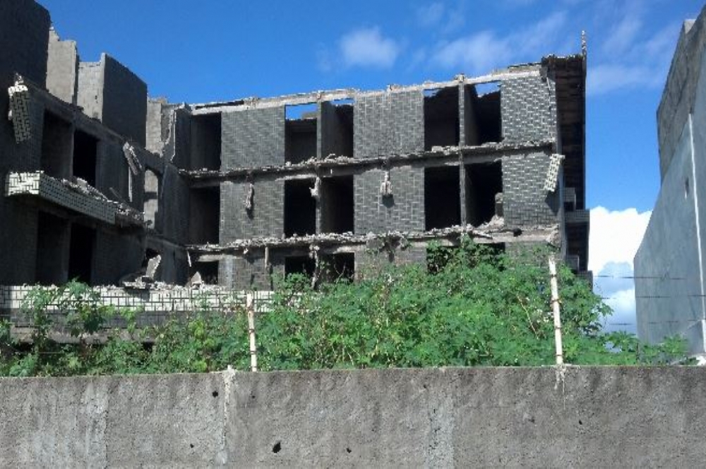 concentração hoteleira ficar a mercê das irregularidades, seja ela na área da saúde, segurança ou infra-estrutura… As fotos anexas são de um prédio localizado na rua Cap. Ten. Edvaldo Lima Santos, rua no fundo do Farol da Coroa do Meio. É facilmente constatado o perigo de acidente devido à deterioração do prédio, é normal vê peças e mais peças caírem e com passar dos dias vejo um desastre maior acontecer e nenhum órgão tomar a devida providencia para implosão deste Elefante Branco que anos empobrece a imagem da nossa orla, servindo de moradia para pragas urbanas e maus elementos (no consumo da droga e esconderijo para pequenos roubos). Em uma das fotos da para perceber uma grande peça de concreto segura apenas por um vergalhão e a qualquer momento possa cair e danificar a estrutura do prédio ao lado, qual nós pagamos todos os impostos em dia e qual investimos nosso dinheiro para assim poder ter uma melhor qualidade de vida, porém temos esse lindo vizinho a nos incomodar. Já entramos em contato com a Emurb, porém creio ser necessária uma ação do Ministério Público.”