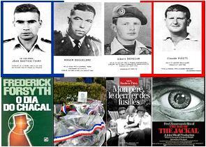 De Gaulle começaria uma carreira política de muitas vitórias, sempre demonstrando saber sair dos cargos a tempo, não insistindo quando a maré lhe era desfavorável. No princípio, como chefe da nação e do governo provisório, quando sua popularidade de vencedor o fazia maior herói, soube conseguir sucessivas vitórias nos referendos.  Na Inglaterra, Churchill era derrubado por Atlee, o líder trabalhista. Na França, logo valeria também a máxima de Plutarco de Queroneia (45-125?), filósofo e prosador grego: “Ignorar a vida dos homens cuja fama subiu à imortalidade é continuar todos os dias da existência terrena em estado de infância” Ou ainda: “A ingratidão para com os seus grandes homens é a marca dos povos fortes”. Escolhido pela unanimidade como chefe de governo, De Gaulle vê logo o parlamento começar a lhe negar aprovações de ministros e políticas. Querem-lhe retirar até o direito de comutar penas limitando as prerrogativas do Presidente da República. Querem-no igual ao “un cochon a l’engrais”, (um leitão a cevar), como se dissera outrora Napoleão Bonaparte após empreender o golpe de 18 Brumário. Tornar-se um leitão ou um galo capão, dócil, gordo e pomposo, jamais. Renuncia ao cargo maior dos franceses, abrupta e inesperadamente, num dia de domingo, 20 de fevereiro de 1946, retirando-se para a sua residência em Colombey-les-deux-églises, para surpresa de todos. A um seu auxiliar que lhe dissera não ter ele o direito de partir e que era preciso continuar a se submeter ao jogo parlamentar, respondeu: – “Você talvez tenha razão, mas eu não me imagino uma Joana d’Arc casada, mãe de família e, quem sabe, enganada pelo marido”. A um outro comissário que lhe perguntara o que faria com a sua saída inesperada, respondeu: “Os homens não contam, só o Estado conta. Você deve permanecer no seu posto”. Aos que disseram que em oito dias uma delegação iria pedir para que retornasse ao poder respondeu: “Clemenceau não gostava de dizer que os cemitérios estão cheios de insubstituíveis?” A outros ainda confidenciou: “Não se pode ser ao mesmo tempo o homem das grandes tempestades e o das baixas combinações”. A quarta república agora iniciada prenunciava os mesmos erros da terceira: governos fracos, muita agitação e quedas de gabinete em demasia, vinte e cinco em doze anos. Mas as baixas combinações da 4ª República suscitaram diversas tempestades, A França seria humilhada no Vietnam em Diem-biem-phu, e depois quase se dilaceraria na Guerra da Argélia. E aí se lembraram de De Gaulle. Ele era o único que podia pacificar a nação, quase em luta fratricida. Assim, doze anos depois, eis De Gaulle de volta ao poder. Estamos agora em 1958 e a França está à beira da guerra civil, com insubordinação do exército, desmoralizado com a crise da Argélia que se quer um estado independente. Para solucionar o problema que conduz a França à luta fratricida, De Gaulle renova seu pedido anterior de uma república presidencialista forte. Seu pedido é atendido, com reações, é verdade, mas a França consente no encerramento da sua 4ª República, caracterizada por muitos gabinetes, desordem, greves e anarquia.  De Gaulle convoca eleições, e uma nova constituinte. Cria a 5ª República que é aprovada em 28 de setembro de 1958 em expressivo referendo, por 65,87% dos sufrágios, perfazendo 82,60 % dos votos válidos.  Esta  5ª República ainda está vigente até hoje, com poucas mudanças, tendo se revelado eficiente diante das crises políticas ocorridas.  Bastien-Thiry, Roger Degueldre, Albert Dovecar, Claude Piegts, membros do Comando Delta da OAS, organização terrorista pés-negros, contra a independência da Argélia, processados e fuzilados em 1962. Livro de Frederick Forsyth—O Dia do Chacal Manifestação recente no tumulo de Bastien-Thiry.   Livro “Mon père, le dernier des fusillés”, de Agnès Bastien-Thiry sobre seu pai—Cartaz do filme de Fred Zinnemann.