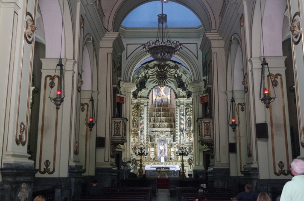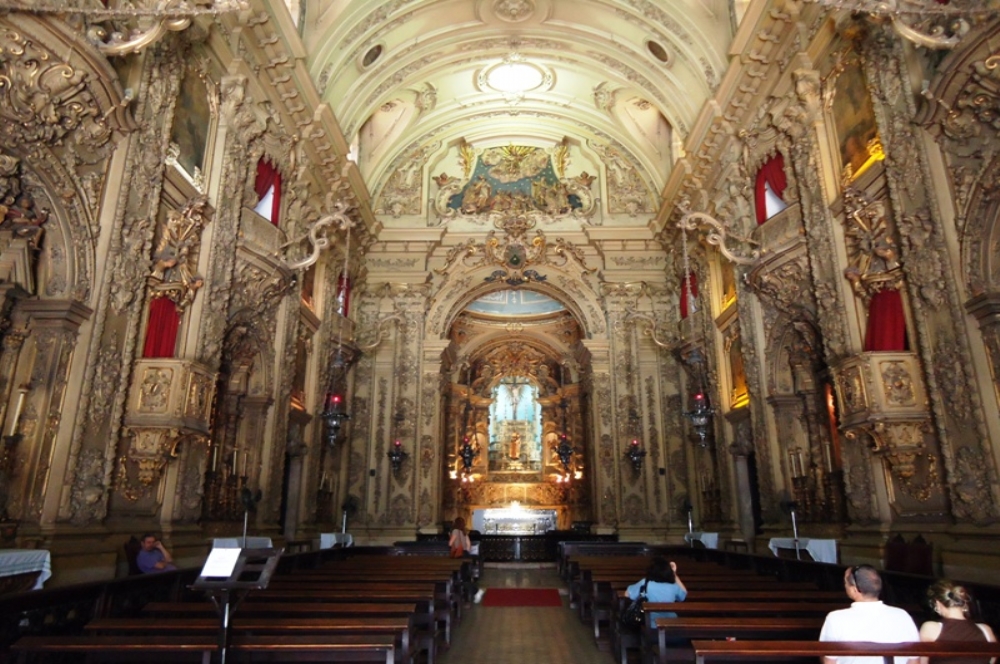 O forro tem pintura ilusionista e as laterais são impressionantes do chão ao teto. Vale a pena também visitar o museu sacro, que custa R$ 5 e há horários de visitas guiadas nas terças-feiras. Abre de terça a sexta-feira. Largo da Carioca, Morro de Santo Antônio, Centro.