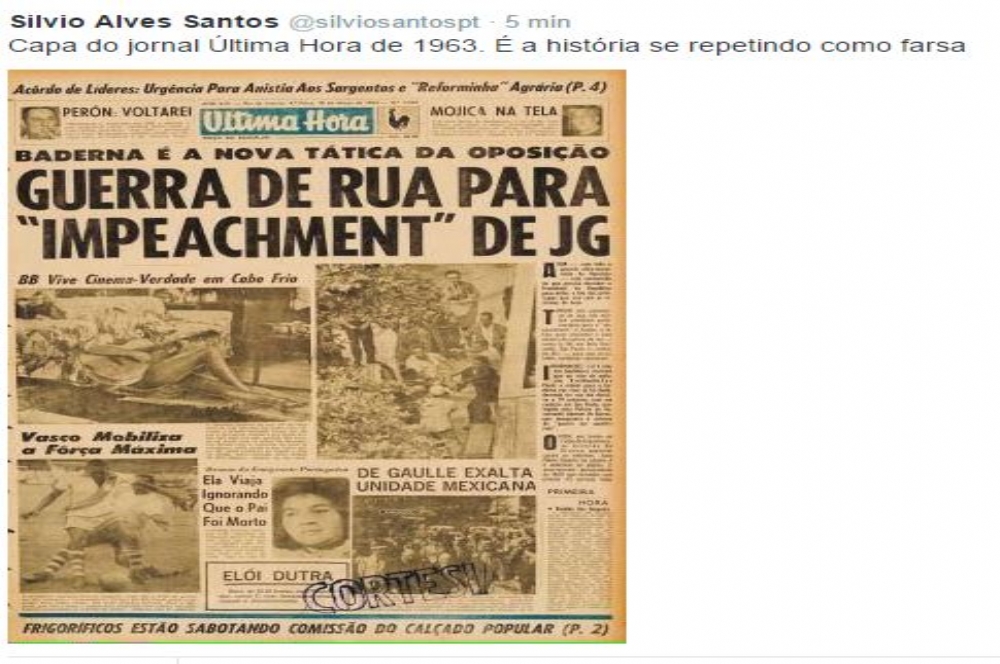 As elites querem retrocesso: um Golpe em nome do combate a corrupção. Na verdade são viúvas da ditadura e da discriminação social.