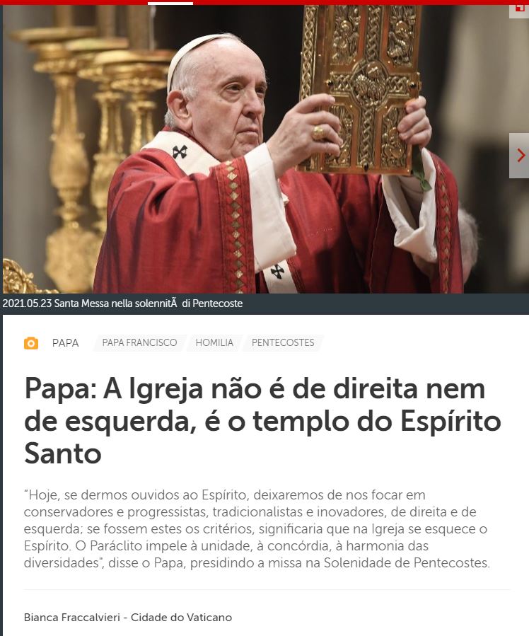 “Compartilhar bens não é comunismo, mas puro cristianismo”. Papa Francisco, 11 de Abril de 2021.