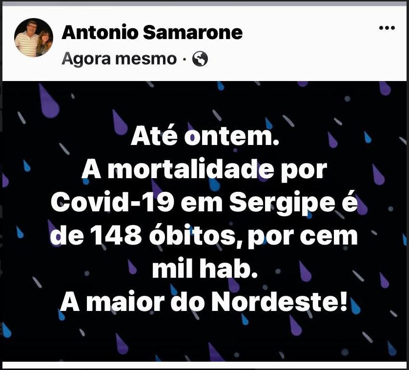 Até domingo, 27, a mortalidade por Covid-19 em Sergipe era de 148 óbitos, por cem mil habitantes. A mais alta do Nordeste. O governador Belivaldo Chagas precisa rever o que está errado. Não custa copiar o que vem dando certo.