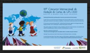 As inscrições para o 49° Concurso Internacional de Redação de Cartas começam HOJE, 10 de fevereiro. Promovido anualmente pela União Postal Universal (UPU) e realizado no Brasil pelos Correios, o concurso objetiva estimular jovens e crianças a expressarem sua criatividade e a melhorarem seus conhecimentos linguísticos, por meio da redação de cartas. Desenvolvida em parceria com escolas e estudantes de todo o país, em 2019 a iniciativa recebeu mais de 6 mil inscrições.