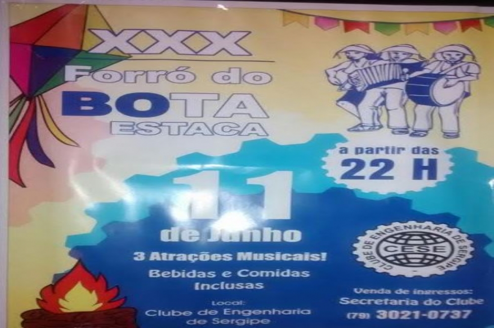 E o tradicional Forró do Bota Estaca, do Clube de Engenharia de Sergipe será realizado no dia 11 de junho, a partir das 22h, com