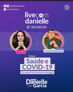 Live hoje, 17/07, às19h Saúde e COVID-19 E o médico sanitarista Antônio Samarone é o convidado da live de hoje, 17, a partir das 19h, coordenada pela delegada Danielle Garcia com o tema “Saúde e COVID-19 e as mais de mil mortes em Sergipe. Por aqui: