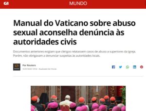 aconselhando seus bispos a relatarem casos de abuso sexual de menores de idade cometidos por padres às autoridades civis, mesmo que a lei local não os obrigue a isso, endurecendo sua orientação oficial a respeito de uma questão que abalou a Igreja Católica nos últimos anos. Porém, fica a interrogação: como proceder quando o acusado for um bispo, cardeal ou uma autoridade maior? A quem recorrer? Direto ao Papa? Matéria aqui.
