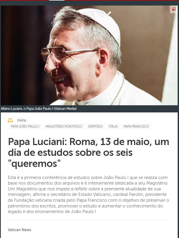 Ouça e compartilhe: https://www.vaticannews.va/pt/papa/news/2022-05/joao-paulo-i-papa-luciani-dia-estudo-seis-queremos-pontificado.html