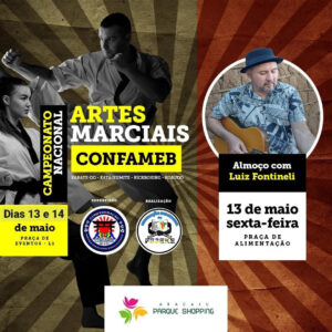 Cerca de 300 atletas Na parte esportiva o evento servirá para seletiva de dois campeonatos internacionais: Argentina e o do México de Artes Marciais, dando assim duas oportunidades para os atletas participarem de eventos de referências mundiais. O evento reunirá cerca de 300 atletas de mais de 10 Estados do país. Sergipe foi escolhido porque o território está bem localizado e agrega também belezas naturais. Além da parceria com o Aracaju Parque Shopping conta com as seguintes parcerias: UPHOUSE; ÓTICAS CAROL; SESI; ESPETINHO AJU; MIDIA AJU; MAAC; HOTEL DA COSTA e ACORDA SAÚDE.