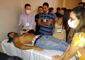 Curso de Ultrassonografia em Anestesia III Um dos instrutores do curso de ultrassonografia em anestesiologia foi Dr Lucas Wynne Cabral, que ministrou a aula sobre “Bloqueio do membro inferior”. Ele destacou a importância de deixar os profissionais familiarizados com esta prática. “Esse é um curso que existe em todo o Brasil e que com a pandemia deu uma retraída. Agora, com a amenizada da pandemia da Covid-19, estamos retomando os cursos, para passar não só a parte teórica, mas também a prática, mostrando como fazer o escaneamento de cada região, nos nervos, nos plexos, para que o anestesista consiga fazer no dia a dia esse trabalho com mais facilidade”.