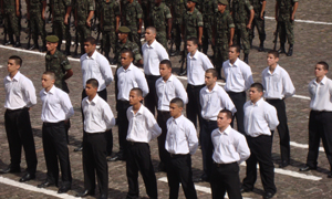 | Alunos do 3º ano do Arquidiocesano que estão participando da Escola de Instrução Militar. |