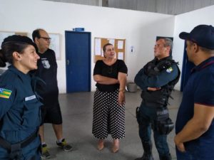 de Itabaiana, Carminha Mendonça, ao lado de alguns auxiliares, visitou a unidade do Grupamento Especial Tático de Motos – Getam, para resolver o problema gerado com a suspensão do serviço de transporte dos alunos do projeto Treinando e Formando Cidadãos.