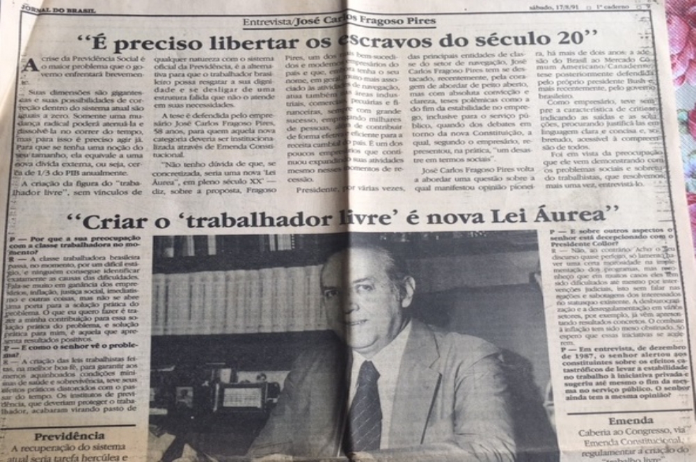 A frase fora pronunciada por José Carlos Cardoso Pires, um empresário no ramo da navegação que possuía então 58 anos, que alardeava algo bem atual nas discussões encaminhadas visando a terceirização do trabalho, e bem além com a revogação da CLT, no todo, ou em parte.