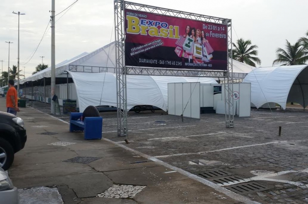 tradicional feira do Sebrae. No local certo e construído para este fim. Porém, parece que tem autoridade que gosta do quanto pior, melhor e resolveu “ceder” o espaço público para outra feira com o nome “Feira de Verão – Expo Brasil”, de 23 de janeiro a 14 de fevereiro. Sabe em que local? Tomando quase todo o estacionamento da Passarela do Caranguejo. O único estacionamento público daquela área. Um detalhe: essa Expor Brasil já foi feita várias vezes em espaços privados na própria orla. O que é correto.