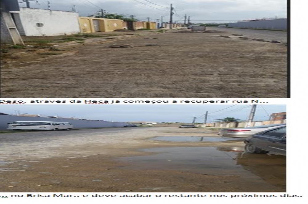 Brisa Mar (Zona de Expansão) cujo calçamento ficou irregular com águas empoçadas causando problemas para os moradores. Na foto ao lado o leitor nota a parte que já foi reparada e a outra que ainda falta, com poças de água por conta das chuvas. A primeira obra foi feita pela empresa Heca, o blog não sabe se a recuperação agora foi da mesma empresa, ou outra encaminhada pela Deso.