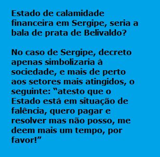 No caso de Sergipe, decreto apenas simbolizaria à sociedade, e mais de perto aos setores mais atingidos, o seguinte: “atesto que o Estado está em situação de falência, quero pagar e resolver mas não posso, me deem mais um tempo, por favor!”
