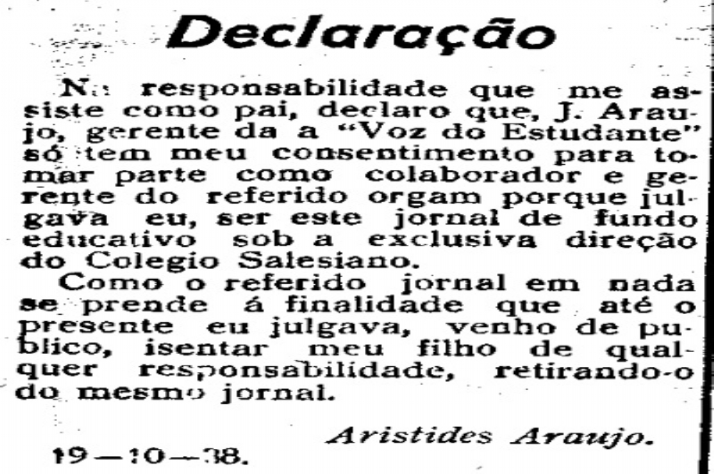 | Publicado no jornal aracajuano Folha da Manhã, em 21 de outubro de 1938 |