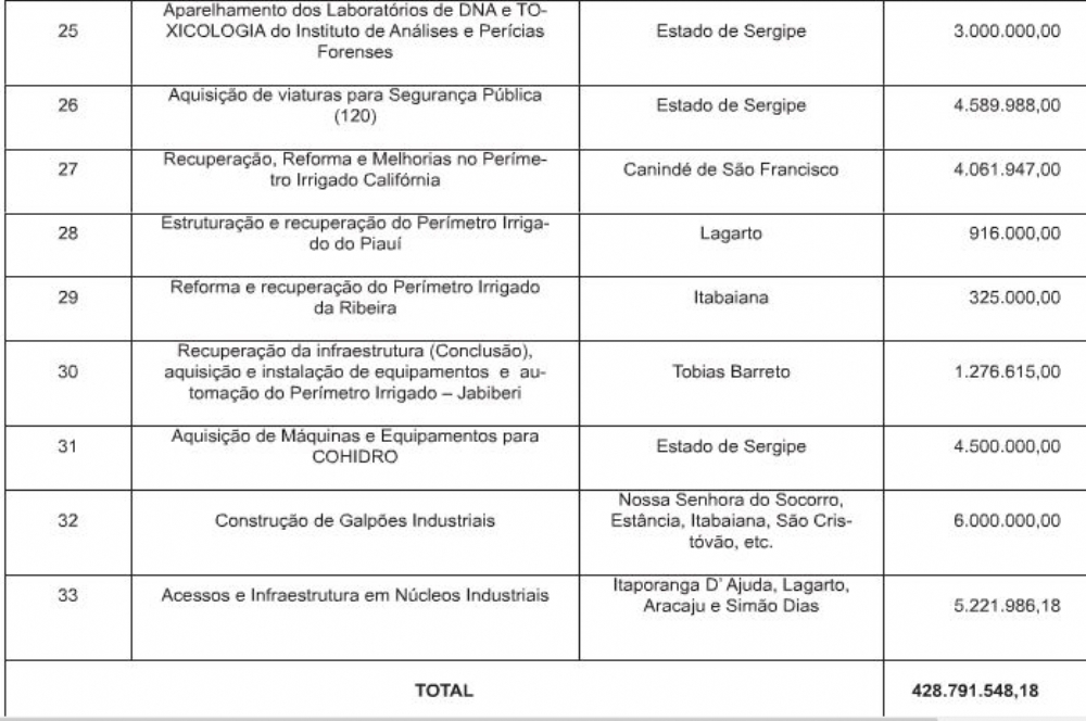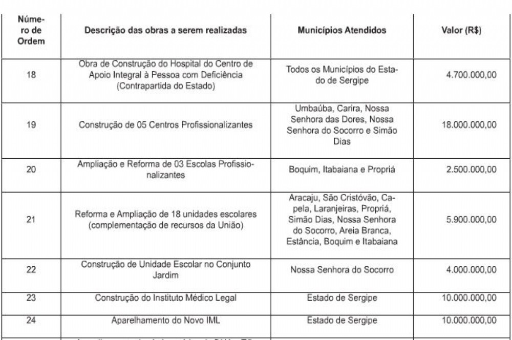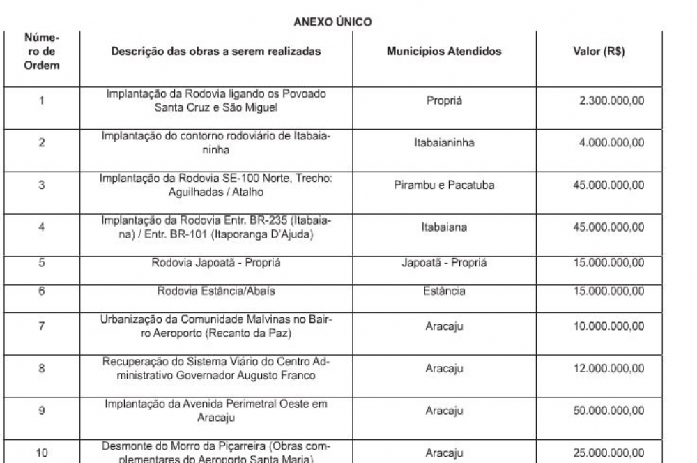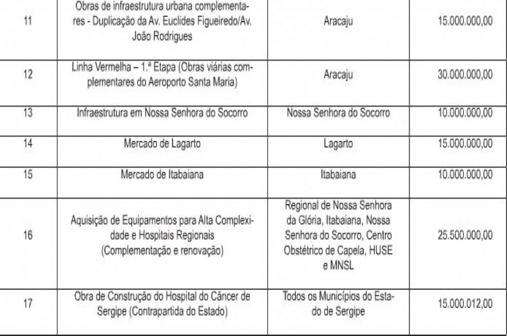E o Diário Oficial do Estado de Sergipe de hoje, 14, circula com a sanção do Proinveste e a relação das obras. Confira nas tabelas ao lado.