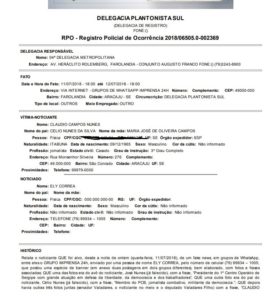 Segundo BO Como o titular deste espaço já recebeu através dos amigos e leitores todas as informações do responsável pelo celular fake, será prestado um novo BO com o nome verdadeiro. Além disso, foi repassado por um administrador de um grupo o responsável pela infiltração do fake, que também será incluído no BO e no processo judicial. Os leitores tenham paciência, pois assim que o novo BO for registrado divulgará os nomes dos envolvidos.
